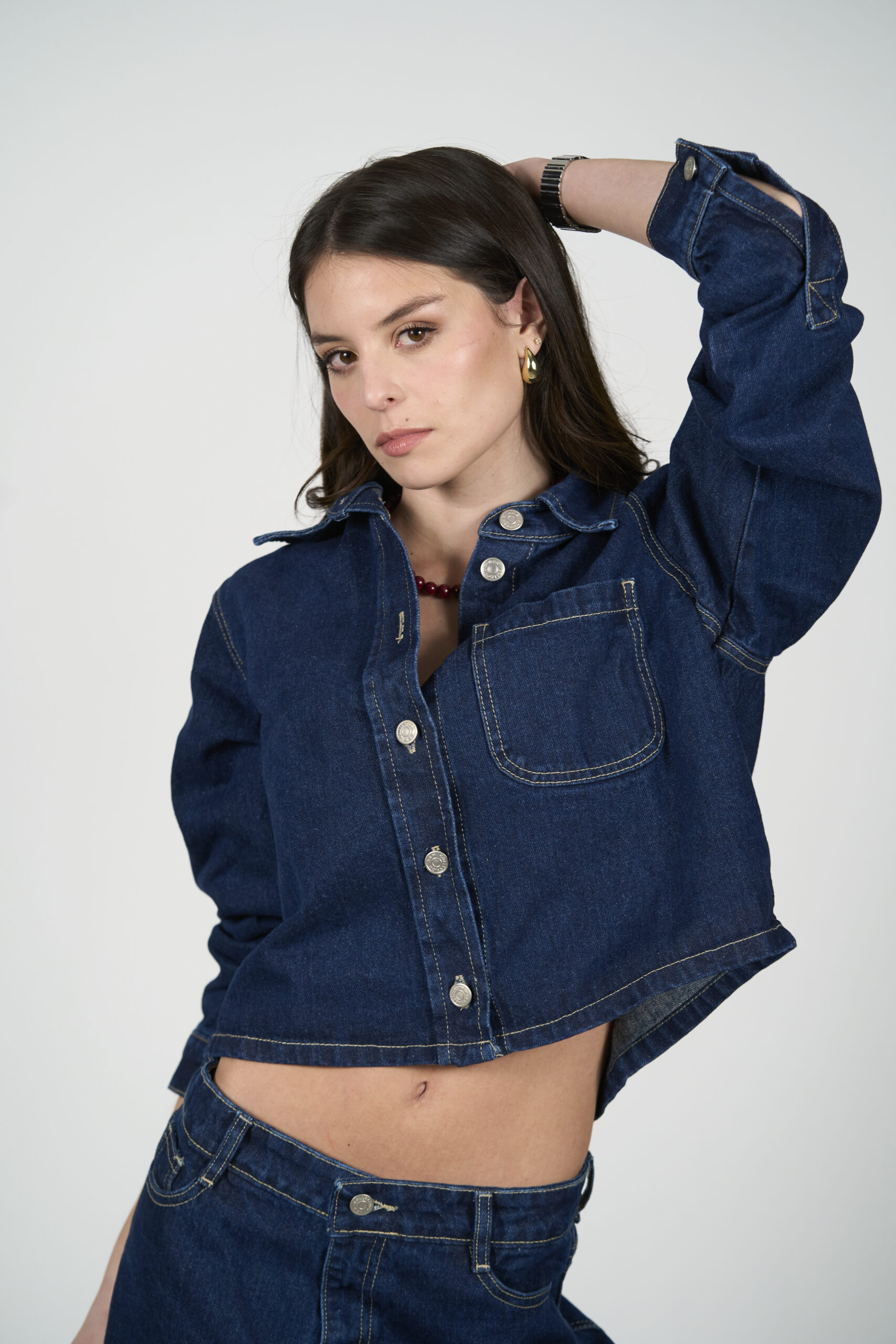 Nuestra chaqueta Emma es una prenda atemporal que combina estilo y comodidad. Confeccionada con Denim Wrangler Azul  100% algodón, es un básico infaltable y  versátil que se adapta a cualquier temporada y ocasión. Diseño y Confección Nacional