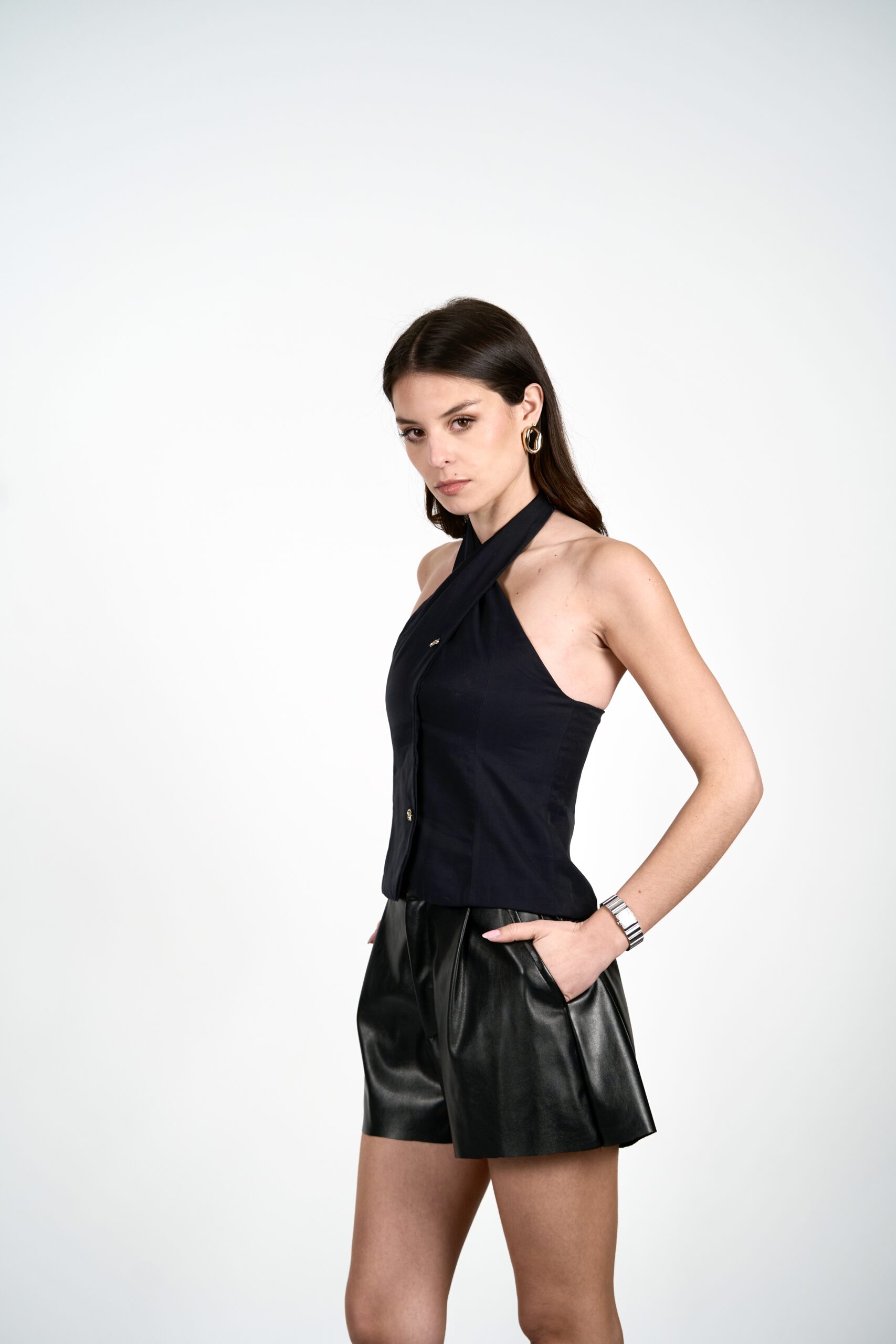 Si buscas un look más femenino, una falda short o una mini combinaría perfectamente. Combinalo con tus zapatos favoritos.