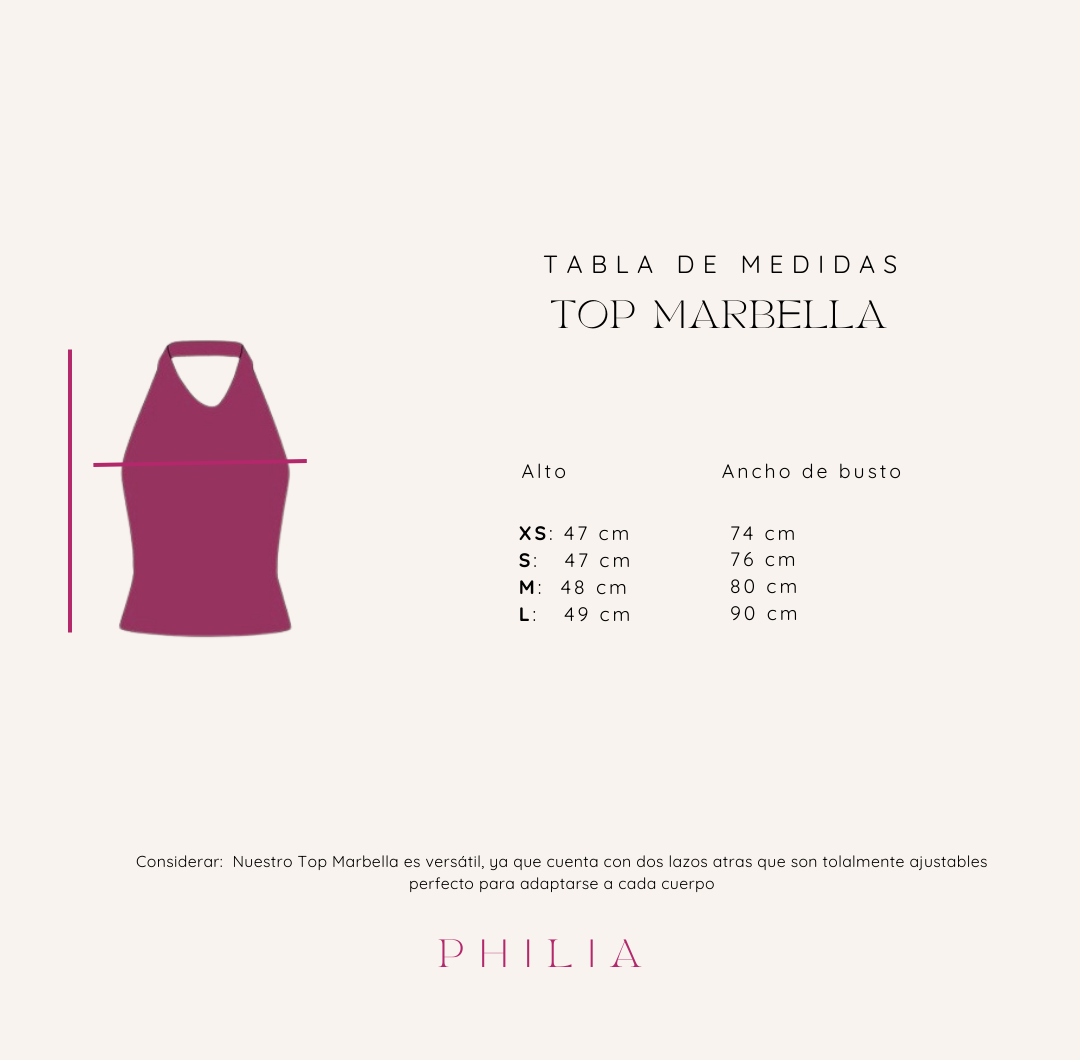 Nuestro Top Marbella Halter es la combinación perfecta de elegancia y sensualidad. Su diseño halter realza los hombros y el escote, mientras que la espalda descubierta aporta un toque audaz y femenino que no pasa desapercibido. Confeccionado en un tejido suave y ligero, se adapta cómodamente al cuerpo al tener lazos adapatables, ofreciendo libertad de movimiento y un ajuste favorecedor.